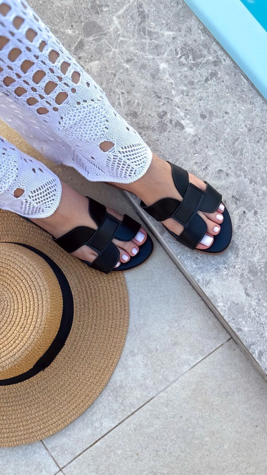 Apresentamos a Rasteira Clarisse na cor preta, perfeita para quem busca um toque de elegância aliado ao conforto.